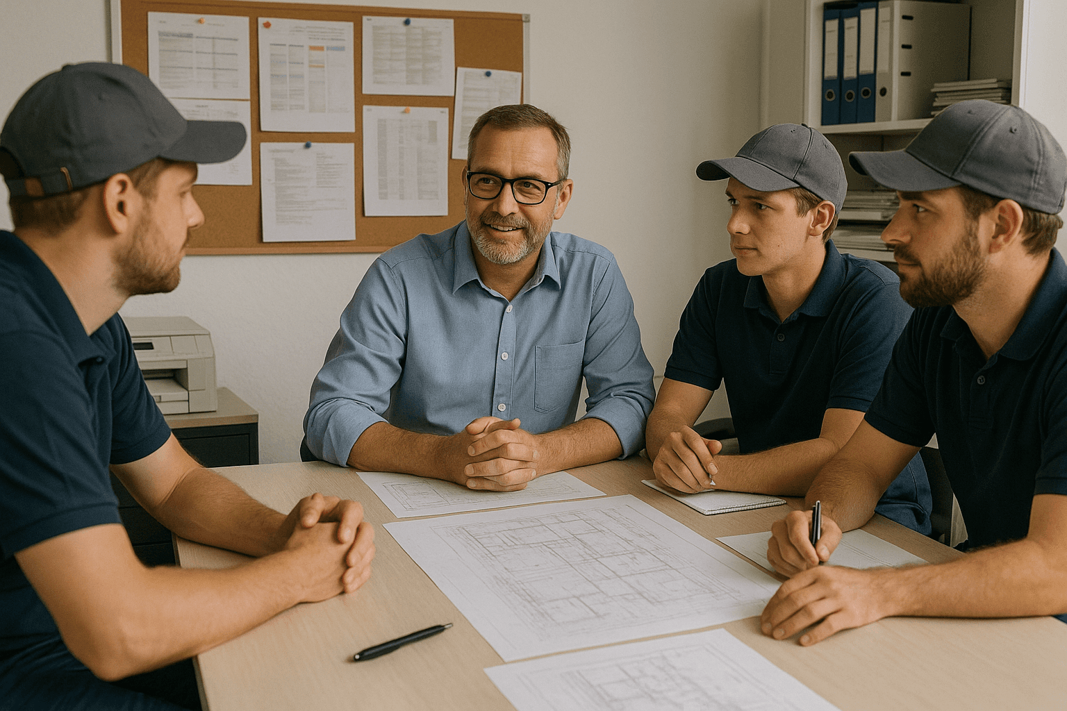 Unser Ziel: dem Haustechnik-Geschäftsführer den Telefon-Stress abnehmen, damit Zeit und Geld dort bleiben, wo sie hingehören – im Betrieb.